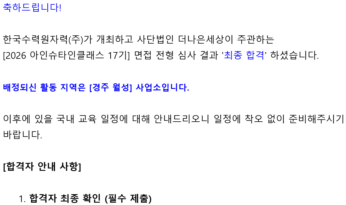 사전 교육이나 준비 어떻게 했는지, 월성에서 어떻게 활동했는지도 차근차근 글로 남겨볼게요. 아클 준비하시는 분들께 도움이 되었길 바랍니다.(도움이 되셨으면 구독도 부탁드려요!)
