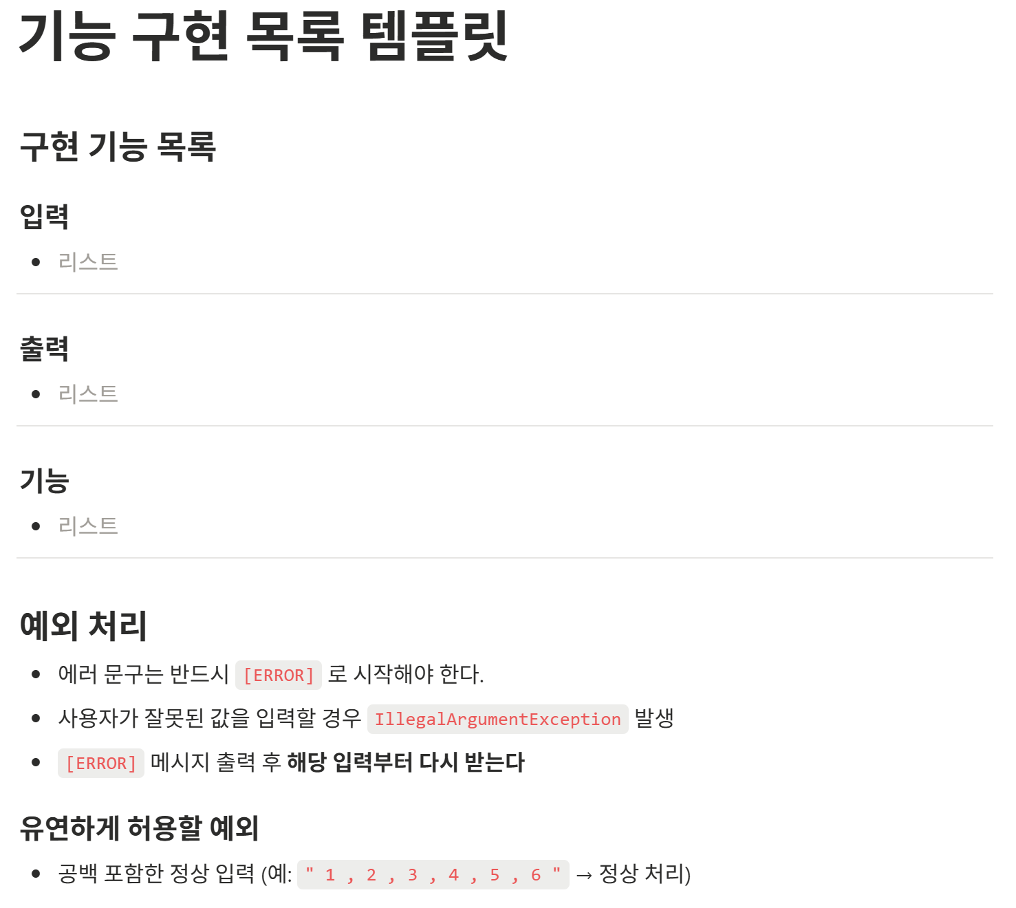 기능 구현 목록 템플릿