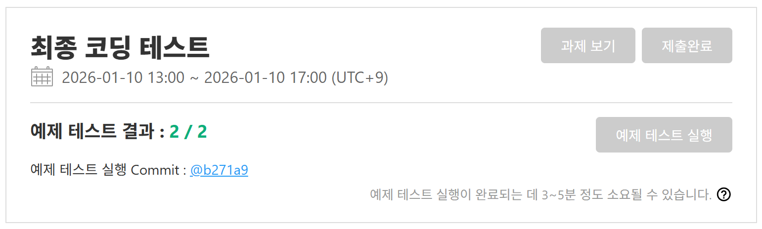 10분 전부터 코치 한 분께서 시험 진행에 대해 설명해주셨고, 지원 페이지로 들어가니 최종 코테 문제가 올라왔다!
